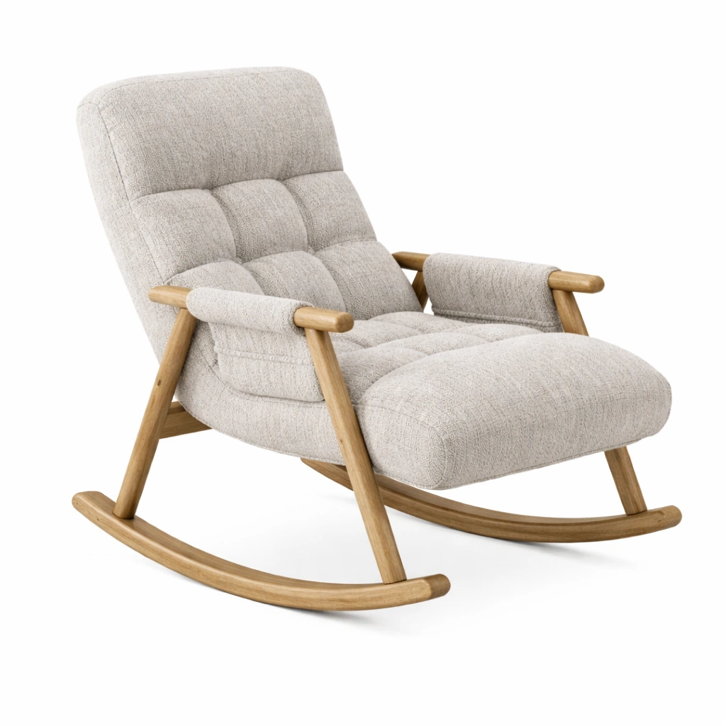 Características: asiento acolchado, respaldo inclinado, balanceo suave. Adecuado para uso en interiores.