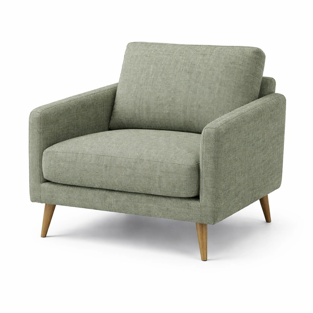 Sillón de tela con patas de madera