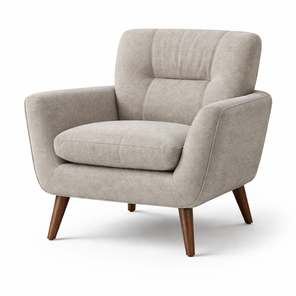 Sillón de tela de poliéster beige con patas de madera