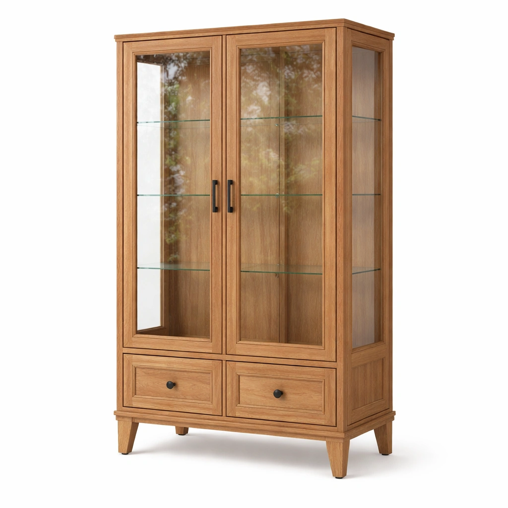 - Tipo de almacenamiento: Armario con vitrinas y cajones